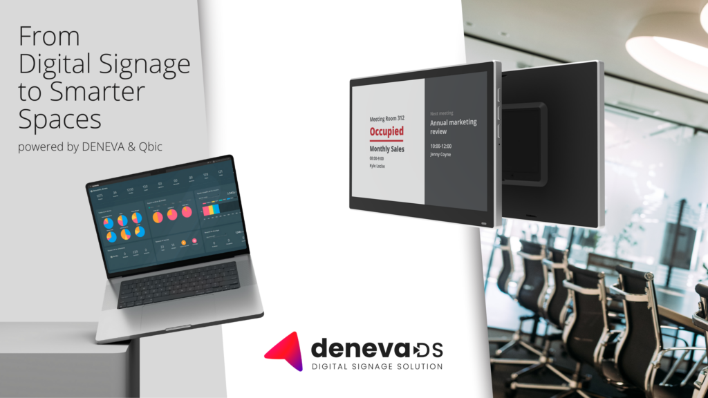 DENEVA allows you to schedule and display content across all QBIC-enabled displays, including meeting room screens, from a single interface: