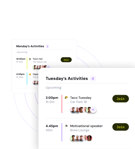 • Employee engagement – Encourage in-person connection by advertising compelling events