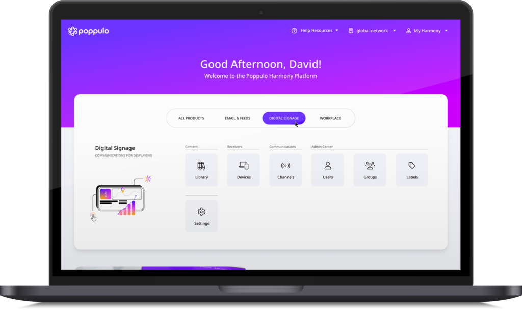 Poppulo (formerly FWI) is the leading enterprise software company transforming customer and employee experiences with digital signage applications and multi-channel employee communications. Over 4,500 customers rely on Poppulo to power applications used by millions of people per year—everything from meeting room signage and menu boards through video walls, KPI screens, and integrated, data-driven displays. Poppulo’s customers include the leaders in manufacturing, transportation, banking, education, hospitality, and more.